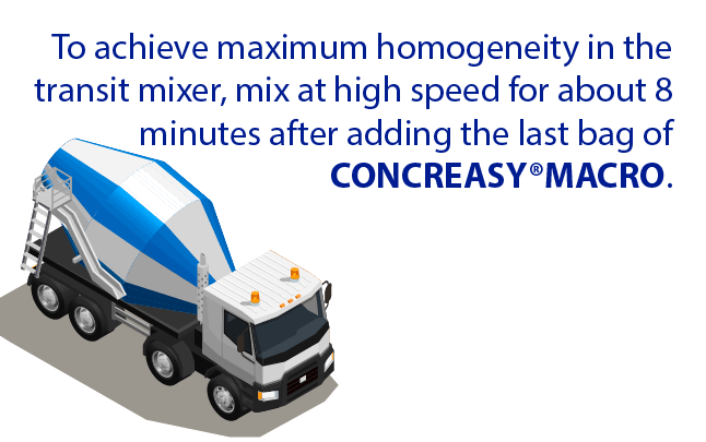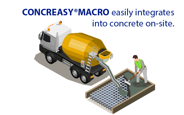 CONCREASY®MACRO, produced from 100% pure Polypropylene raw material in accordance with ASTM C-1116 and EN 14889-2 standards, provides ultra-high energy absorption capacity, effective crack control, and enhanced concrete service life in field concrete reinforcement applications.